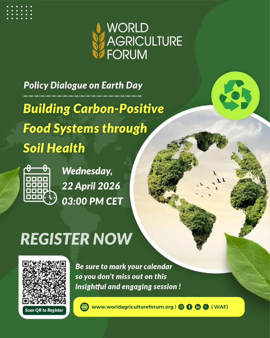 This Earth Day, join the World Agriculture Forum for a policy dialogue on “Building Carbon-Positive Food Systems through Soil Health”